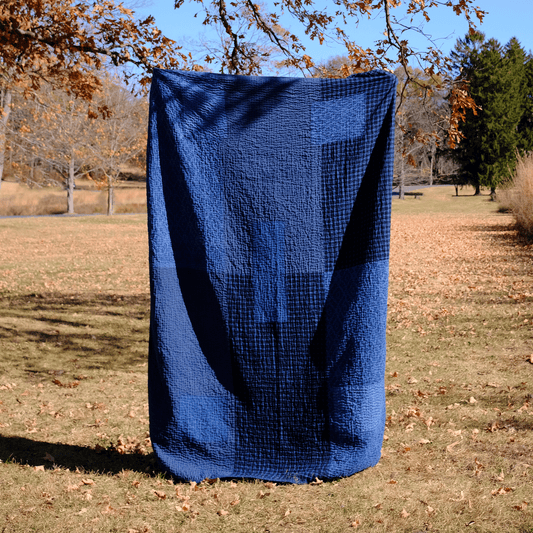 Indigo Over-dyed Cotton Patchwork Throw Quilt