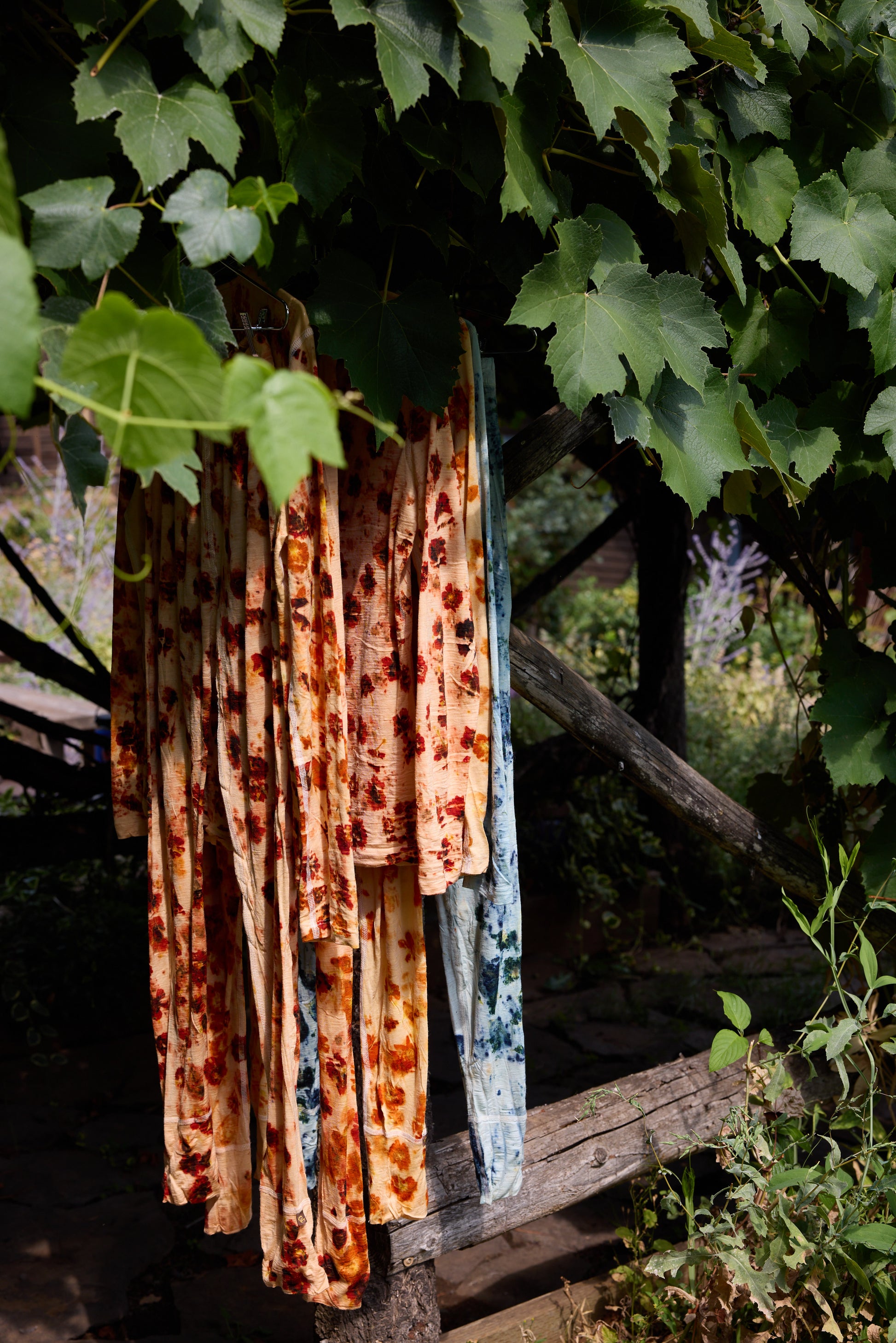 Sun Sun x Costarossa Farm Floral Dyed Merino Wool Baselayer sets.